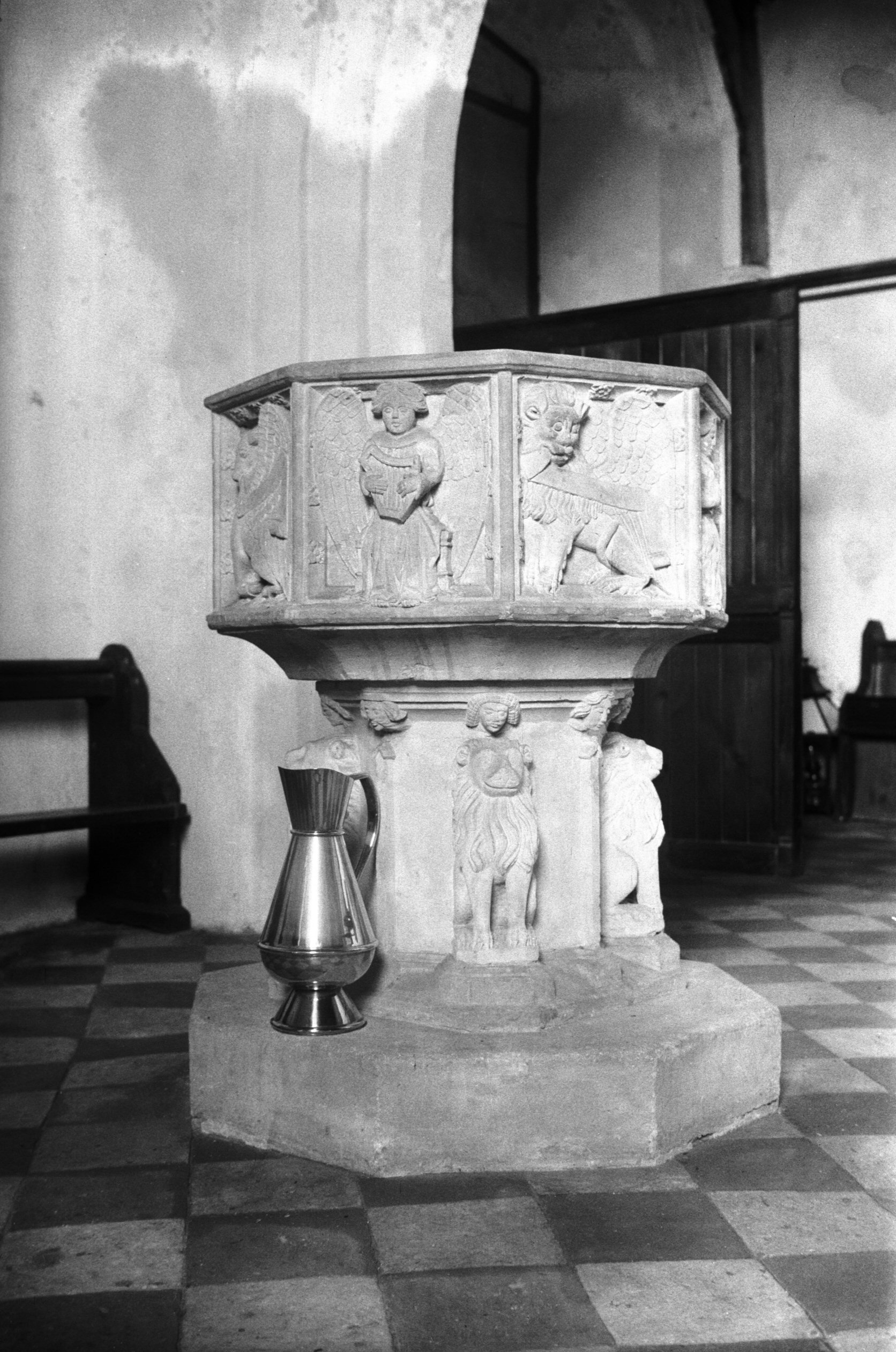Lt Walsingham St Mary's church font [3964] 1950-07-28