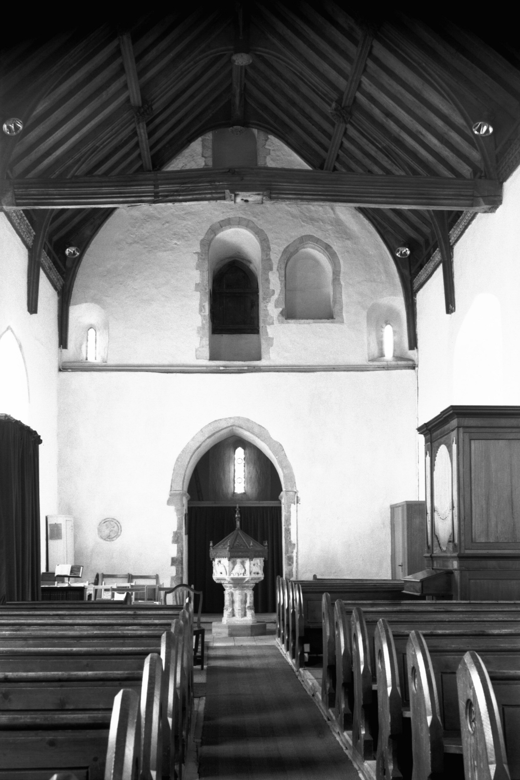 Beam across the nave formerly supported the font cover. |