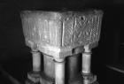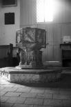 Late Norman square font with carved and arcaded bowl. |