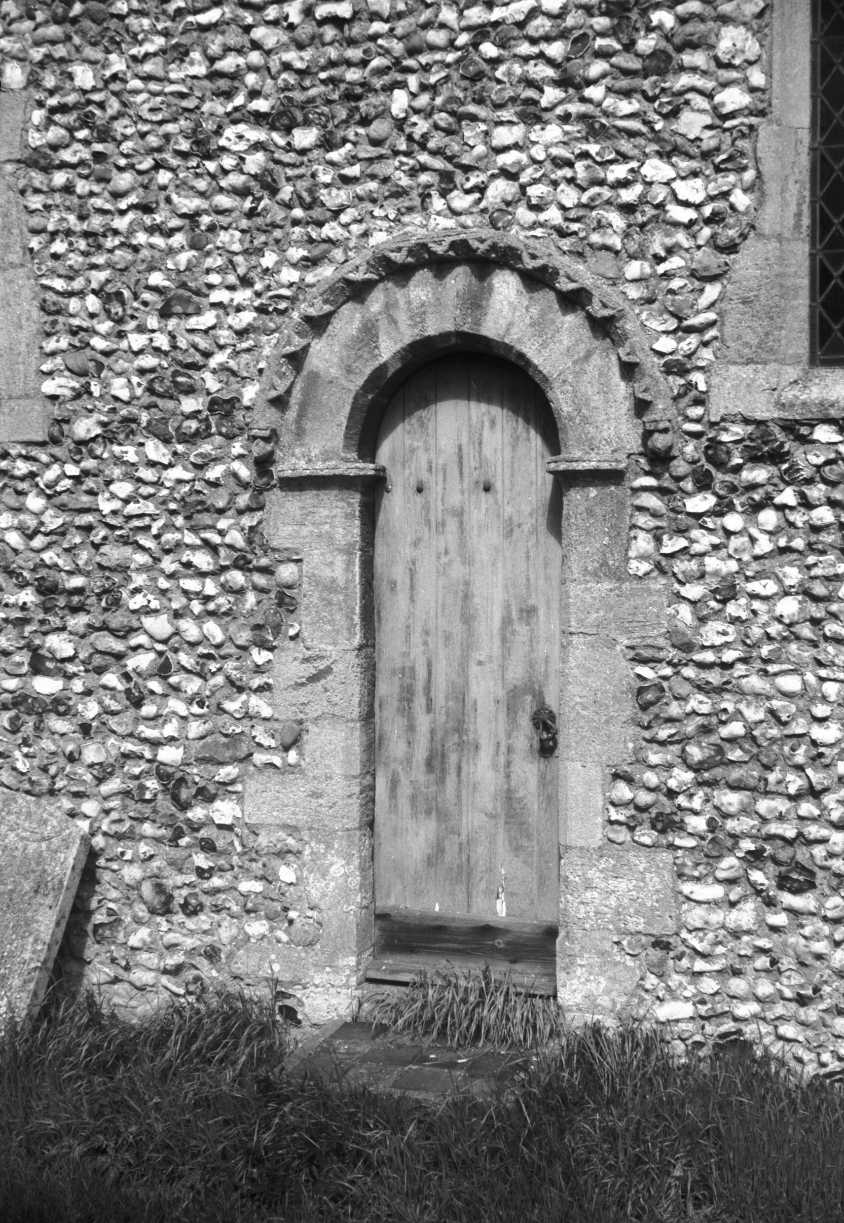 Blocked doorway on north side of church. |