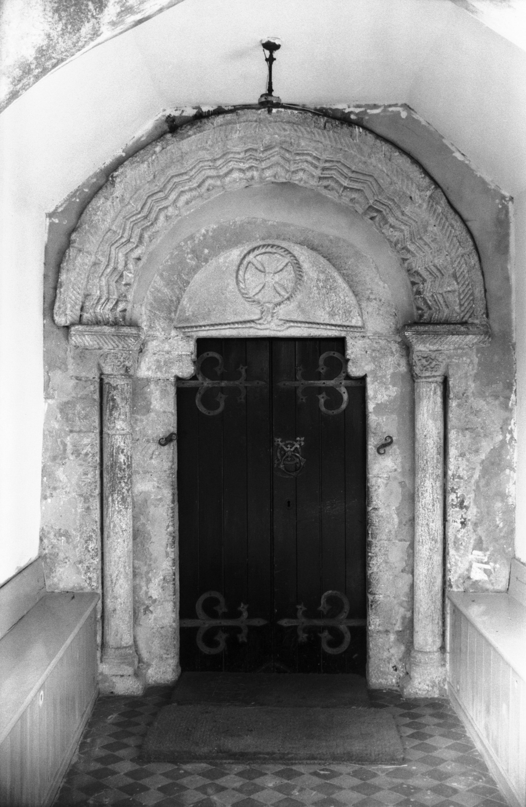 With carved tympanum. |