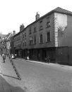 | Colegate Black Boys Yard view south [2874] 1939-02-16 Facing up nearby Calvert St from the south side of Colegate is the Merchants Tavern, formerly the Black Boys, and adjoining it to the west was Black Boys Yard where, in a building at the rear, during the first half of the 19c, Miss Sarah Ann Glover held her school. She was an excellent teacher, but her chief claim to fame was her invention of the Norwich Sol-fa system of music notation on which John Curwen's Tonic Sol-fa was largely based. Miss Glover's father was the rector of St Lawrence's church and formerly preserved in a room above its porch, but now transferred to St Peter Hungate Church museum, is a curious instrument, which she is said to have used when teaching her pupils. It consists of a long narrow mahogany box containing a drumstick and a number of pieces of glass, the latter attached to two pieces of string to enable them to give forth various musical notes when struck. |